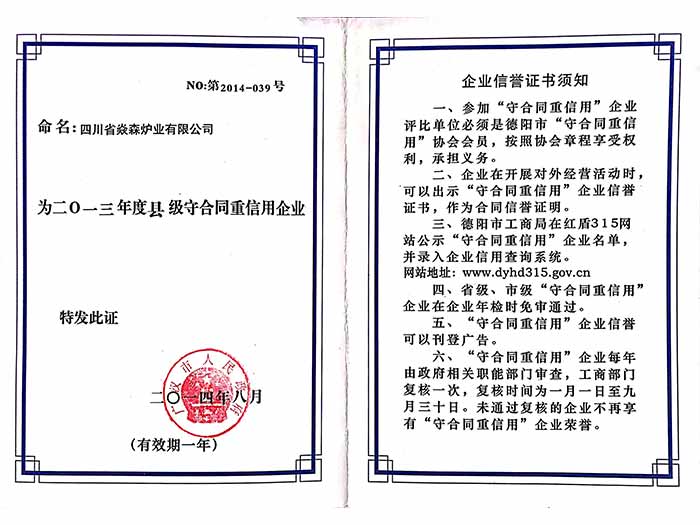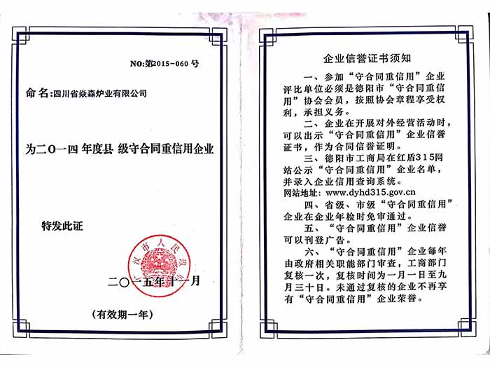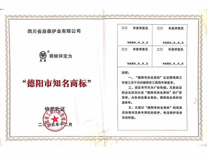 四川省焱森爐業(yè)有限公司注冊資金1200萬元,生產車間近1萬平方米,是一家集生物質爐研發(fā)、設計、生產、銷售、服務、技術咨詢于一體的國家高新技術企業(yè)。公司技術力量雄厚,生產設備齊全,工人技術熟練,所有產品嚴格按照國家相關標準及ISO9001:2008質量管理體系實行模具化、規(guī)范化生產,年產能力達15萬臺以上。公司擁有建全的14001環(huán)境體系認證及18001職業(yè)健康安全體系認證。我公司擁有自己的知識產權及自主品牌“焱森”,是國家高新技術企業(yè),擁有54項專利。